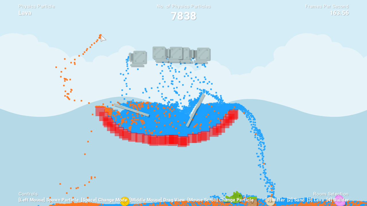 Physics Particles is a project framework for simulating liquids using the built-in physics system, which automatically handles all force, collision and gravity calculations, thus making it easier to focus on the creative instead of the technical.